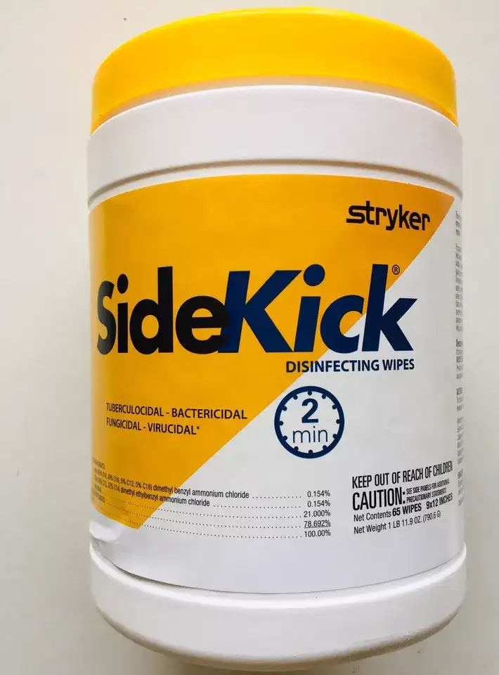 - *SideKick is a cleaning and disinfecting wipe that is convenient and effective at disinfecting healthcare surfaces with a two-minute wet contact time