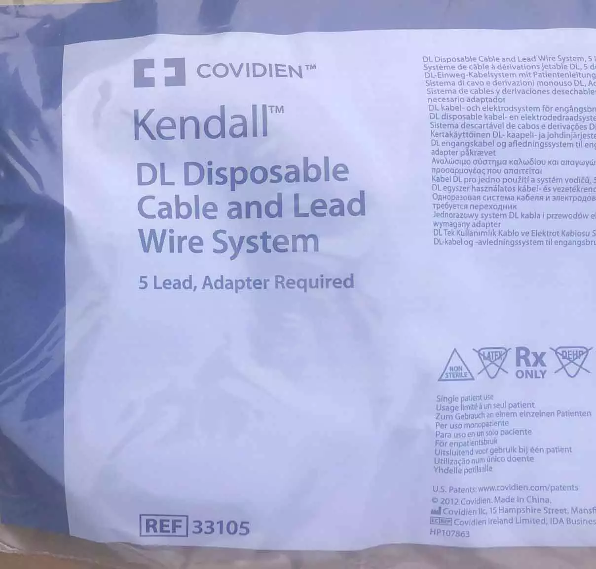 Coviden Kendall DL Disposable Cable and Lead Wire System Lot of 5 Ref 33105